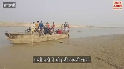 VIDEO : श्रावस्ती: राप्ती के सिसवारा घाट पर बना पुल तो नदी ने मोड़ ली धारा, लोगों को अभी भी लेना पड़ रहा नाव का सहारा