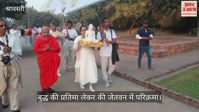 VIDEO: श्रीलंका के अनुयायियों ने बुद्ध की प्रतिमा लेकर की जेतवन में परिक्रमा