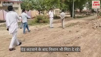 VIDEO: श्रावस्ती: खुद हरियाली के दुश्मन बने जिम्मेदार, मुक्ति धाम से काटे गए आठ वर्ष पुराने पेड़
