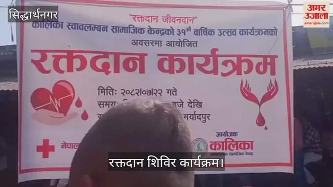 सीमा से सटे नेपाल के कपिलवस्तु जिले के सीमावर्ती क्षेत्र के यशोधरा ग्रामीण नगर पालिका के वार्ड क्रमांक 7 स्थित मर्यादपुर कस्बा में शनिवार को रक्तदान कार्यक्रम आयोजित किया गया। यह रक्तदान नेपाल रेड क्रॉस सोसाइटी कपिलवस्तु के सहयोग से और कालिका स्वालंबन सामाजिक केंद्र द्वारा आयोजित किया गया । जिसमें स्थानीय सीमावर्ती क्षेत्र के लोगों ने भाग लिया। रक्तदान शिविर में कुल 35 पिंट रक्त का संकलन किया गया।