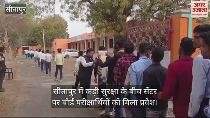VIDEO : सीतापुर में कड़ी सुरक्षा के बीच सेंटर पर बोर्ड परीक्षार्थियों को मिला प्रवेश