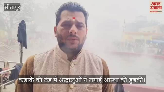 सीतापुर में कड़ाके की ठंड में श्रद्धालुओं ने लगाई आस्था की डुबकी