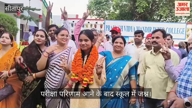 UPMSP Result 2026: परीक्षा परिणाम आने के बाद सीतापुर के प्रकाश विद्या मंदिर में मनाया गया जश्न