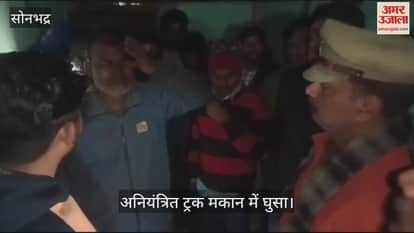VIDEO : सोनभद्र में अनियंत्रित ट्रक मकान में घुसा, तीन लोग घायल, रास्ते का बाइक सवार आया चपेट में