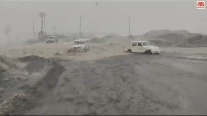VIDEO : तेज बहाव में फंसा वाहन, कर्मचारियों ने कूदकर बचाई जान, बह गई बोलेरो; Video Viral