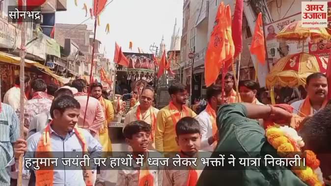 बजरंग बली के जन्मोत्सव पर शनिवार को रॉबर्ट्सगंज के मेन चौक स्थित संकट हरण श्री सिद्ध हनुमान मंदिर से ध्वज यात्रा निकाली गई। हाथों में केशरिया ध्वज और गले में केशरिया गमछा धारण कर श्रद्धालुओं ने वीर बजरंगी के जयकारे लगाए। भक्ति गीतों पर श्रद्धालु थिरकते रहे। इस दौरान मंदिर में सुंदर कांड का पाठ और विशेष आरती भी हुई।