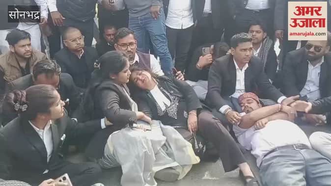 टोल बूथ पर मारपीट के विरोध में सड़क पर उतरे अधिवक्ता