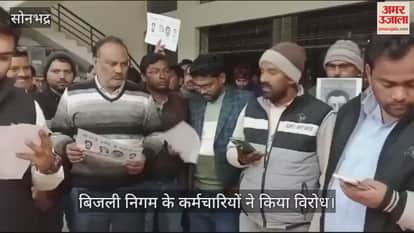 VIDEO : सोनभद्र में बिजली निगम के निजीकरण का विरोध, एक्सईएन कार्यालय पर कर्मचारियों ने किया प्रदर्शन