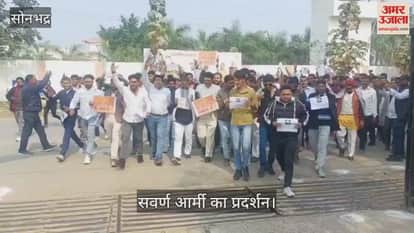 सोनभद्र में सवर्ण आर्मी का प्रदर्शन, सरकार और यूजीसी के खिलाफ नारेबाजी