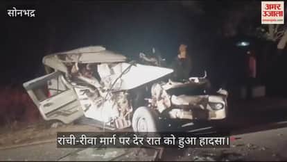 VIDEO : सोनभद्र भीषण सड़क हादसा, बोलेरो सवार दम्पती की मौत, दो बेटों की हालत गंभीर, मची अफरा-तफरी