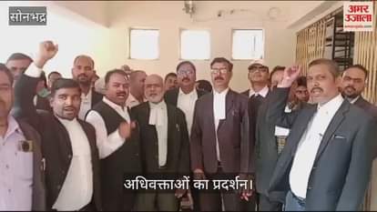 VIDEO : सोनभद्र में तहसीलदार पर भ्रष्टाचार का अरोप, अधिवक्ताओं ने किया प्रदर्शन