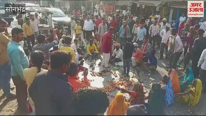 VIDEO : सड़क पर सब्जियां बिखेर धरने पर बैठे विक्रेता, लगाया जाम, चोपन में मंडी खाली कराने पर जताया गुस्सा