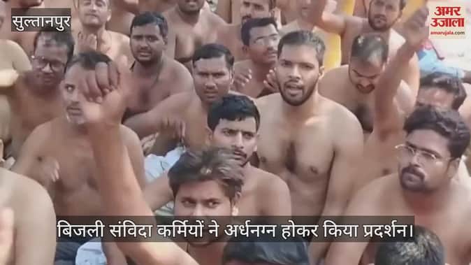 सुल्तानपुर में बिजली संविदा कर्मियों ने अर्धनग्न होकर किया प्रदर्शन