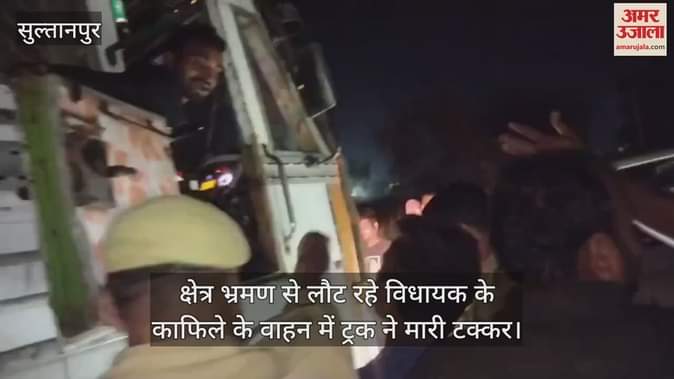 सुल्तानपुर में क्षेत्र भ्रमण से लौट रहे विधायक के काफिले के वाहन में ट्रक ने मारी टक्कर