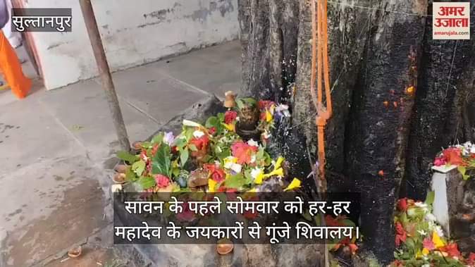 सुल्तानपुर में सावन के पहले सोमवार को शिवालय हर-हर महादेव के जयकारों से गूंज उठे। श्रद्धालुओं ने जयकारों के बीच भगवान शिव का जलाभिषेक किया। दूध, बेलपत्र धतूरा, पुष्प आदि अर्पित करके भगवान शिव की आराधना की। पूजा-अर्चना कर परिवार और विश्व के कल्याण की कामना की।