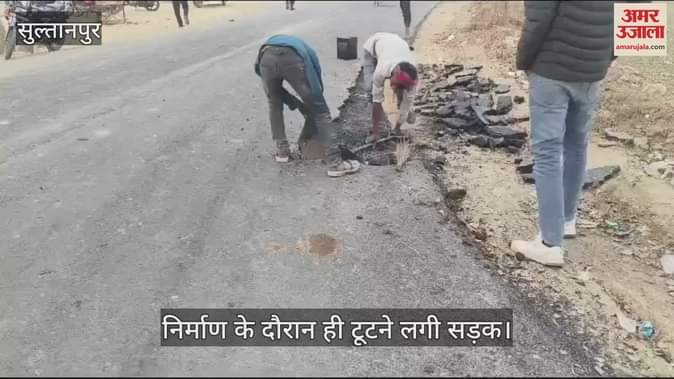 VIDEO : Sultanpur: बनते ही टूटने लगी 10 करोड़ की लागत से बन रही सड़क, खामी छिपाने के लिए उखाड़ा तारकोल-गिट्टी का मिक्चर