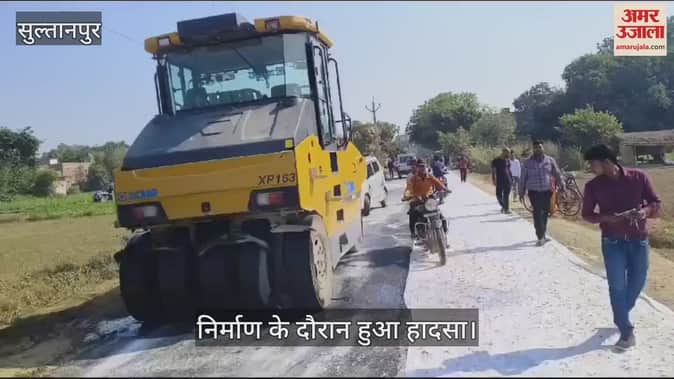 VIDEO : Sultanpur: सड़क निर्माण के दौरान रोड रोलर के नीचे दब गया मजदूर, दर्दनाक मौत