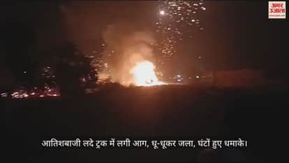 VIDEO : उन्नाव में आतिशबाजी लदे ट्रक में लगी आग, तमिलनाडु से जा रहा था अयोध्या, लोगों में दहशत...हाईवे पर लगा जाम