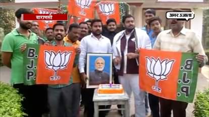 नोटबंदी की पहली सालगिराह पर वाराणसी में बीजेपी कार्यकर्ताओं ने जश्न मनाया। बीजेपी ने केक काटकर नोटबंदी की सालगिराह मनाई और पीएम जिंदाबाद के नारे भी लगाए।