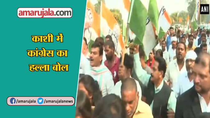 वाराणसी में सड़क पर उतरी कांग्रेस, आरएसएस प्रमुख को बताया जहर उगलने वाला नेता