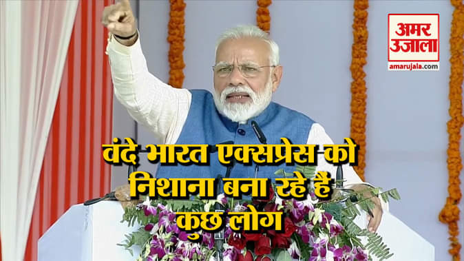 प्रधानमंत्री नरेंद्र मोदी मंगलवार को वाराणसी में थे। यहां पीएम मोदी एक जनसभा को संबोधित किया। जनसभा को संबोधित करते हुए पीएम विपक्षी दलों पर जमकर बरसे। उन्होंने वंदे भारत एक्सप्रेस को लेकर कांग्रेस अध्यक्ष राहुल गांधी पर जमकर हमला बोला।