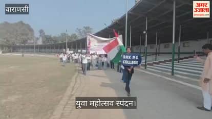 बीएचयू में युवा महोत्सव स्पंदन के लिए एंफीथिएटर ग्राउंड पर शनिवार को 23 टीमें शोभायात्रा लेकर पहुंचीं। इस दौरान छात्र और छात्राएं ढोल- नगाड़ों पर डांस करते हुए पहुंचे। इसमें डीएवीपीजी कॉलेज, बसंता आदि कॉलेज के भी छात्र-छात्राएं शामिल रहे।