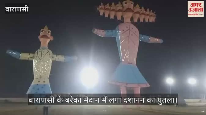 VIDEO : वाराणसी के बरेका मैदान में 75 फीट के दशानन का पुतला लगाया गया, कुंभकर्ण और मेघनाद भी मैदान में खड़े