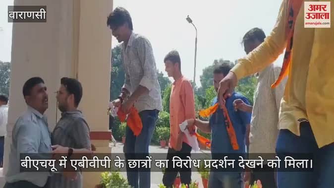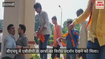 VIDEO : बीएचयू में एबीवीपी का विरोध प्रदर्शन, सेंट्रल ऑफिस के बाहर सिक्योरिटी गार्ड से धक्का मुक्की