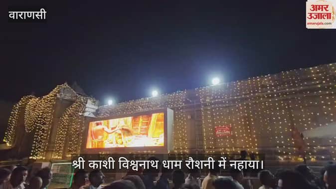 VIDEO : महाशिवरात्रि से पहले श्री काशी विश्वनाथ धाम का अद्भुत दृश्य, झालरों की रोशनी में नहाया मंदिर क्षेत्र