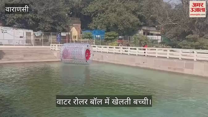 नमो घाट पर वाटर रोलर बॉल का आनंद ले रहे बच्चे, VIDEO