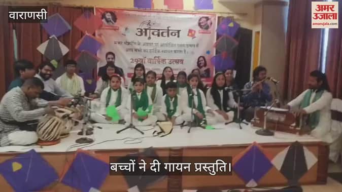 वाराणसी में बृहस्पतिवार को रथयात्रा स्थित कन्हैया लाल स्मृति भवन में मकर संक्रांति के अवसर पर आवर्तन 9वां वार्षिक उत्सव में बच्चों ने गायन की प्रस्तुति दी।