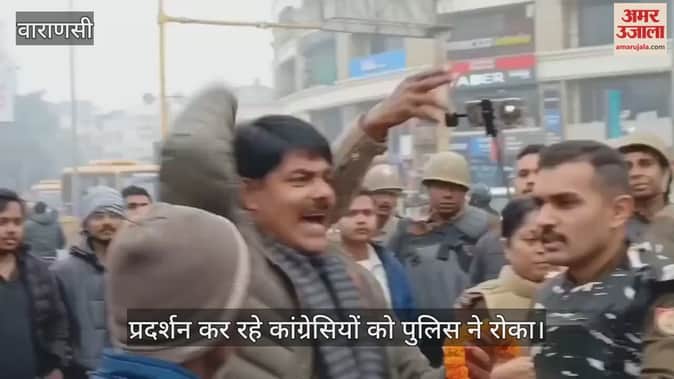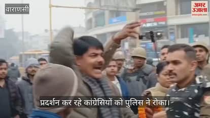 वाराणसी पुलिस और कांग्रेसियों के बीच नोकझोंक, VIDEO