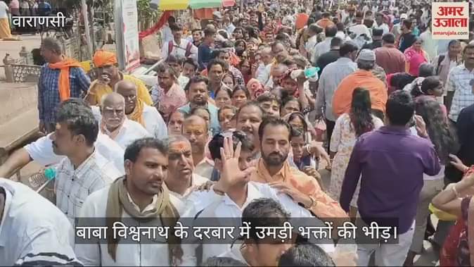 VIDEO : वाराणसी में बाबा विश्वनाथ के दर्शन के लिए उमड़ी भक्तों की भीड़, कतार में लगे भक्त कर रहे अपनी बारी का इंतजार