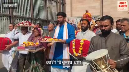 VIDEO: मथुरा से शगुन सामग्री लेकर काशी विश्वनाथ धाम पहुंचे श्रद्धालुओं का भव्य स्वागत