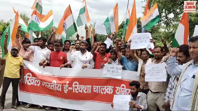 VIDEO : ई-रिक्शा चालक यूनियन ने की नारेबाजी, उत्पीड़न का लगाया गंभीर आरोप