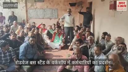 VIDEO : कर्मचारियों ने रोडवेज बस स्टैंड के वर्कशॉप में किया प्रदर्शन, लगाए हर- हर महादेव के जयकारे