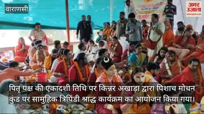 पितृ पक्ष की एकादशी तिथि पर किन्नर अखाड़ा द्वारा पिशाच मोचन कुंड पर सामुहिक त्रिपिंडी श्राद्ध कार्यक्रम का आयोजन किया गया। हर साल की तरह किन्नर अखाड़े ने इस अनुष्ठान को कर पितरों की मुक्ती की कामना की । इस आयोजन में किन्नर अखाड़े की महामंडलेश्वर किन्नर डा.लक्ष्मी नारायण त्रिपाठी ने कार्यक्रम मुख्य भूमिका अदा की और 35 किन्नरों ने पिंडदान तर्पण किया। किन्नर लक्ष्मी नारायण ने कहा कि ऐसे लोग जो छूट जाते है हम हर साल उनका पिंडदान करते हैं ।