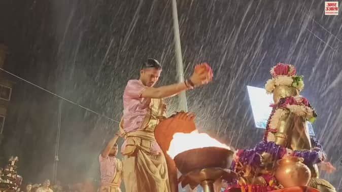 VIDEO : बारिश के बीच गंगा आरती के भव्य और दिव्य नजारे ने मोहा जन मन, भक्तों का रहा जमावड़ा