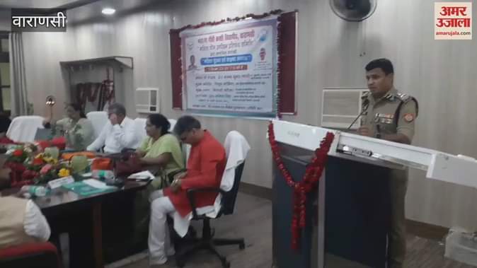 काशी विद्यापीठ के पुस्तकालय सभागार में महिला सुरक्षा एवं साइबर अपराध के बारे में छात्रों को जानकारी देते एडीजी जोन पीयूष मोर्डिया।