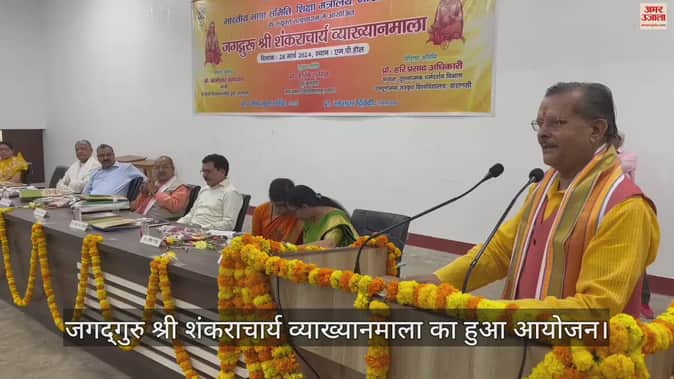 वाराणसी के यूपी कॉलेज में भारतीय भाषा समिति शिक्षा मंत्रालय द्वारा आयोजित जगद्गुरु श्री शंकराचार्य व्याख्यानमाला में प्रो. कामेश्वर उपाध्याय ने विशेष जानकारी दी।