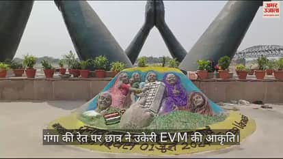 लोकसभा चुनाव को लेकर वाराणसी समेत आसपास के जिलों में प्रशासन समेत कई संगठनों व स्कूलों द्वारा मतदाता जागरूकता अभियान चलाया जा रहा है। इसी क्रम में मतदान के लिए मतदाताओं को जागरूक करने के उद्देश्य से शनिवार को वाराणसी के नमो घाट पर एक छात्र ने रेत से ईवीएम मशीन बनाया। इस कलाकृति को देखने के लिए लोग बेताब दिखे।