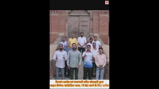 दिव्यांग प्रकोष्ठ एवं वाराणसी बधिर सोसाइटी के संयुक्त तत्वावधान में गुरुवार को मुक-बधिर लोगों ने सांकेतिक भाषा में आम जनमानस से देश हित में मतदान करने की अपील की गई। कार्यक्रम का सूत्र था- 'हम बोल नहीं सकते, मगर हम कर सकते हैं'।