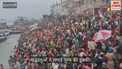 VIDEO : काशी में लाखों श्रद्धालुओं ने लगाई पुण्य की डुबकी, गंगा घाटों पर उमड़े श्रद्धालु