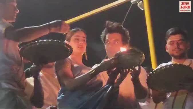 VIDEO : काशी पहुंचे फिल्म स्टार राजकुमार राव और जान्हवी कपूर, की गंगा आरती; लगे हर-हर महादेव के नारे
