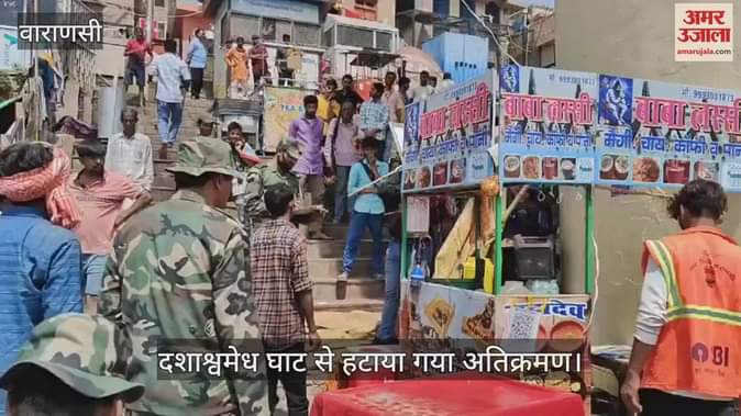 वाराणसी नगर निगम द्वारा शहर से लेकर घाट तक अतिक्रमण हटाने के लिए अभियान चलाया जा रहा है। इसी क्रम में शनिवार को दशाश्वमेध घाट से अतिक्रमण नगर निगम की टीम ने अतिक्रमण हटाया।