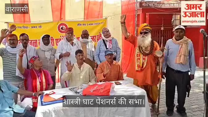 Hindi News ›   Video ›   Uttar Pradesh ›   Varanasi News ›   Pensioners Protest at Shastri Ghat in varanasi