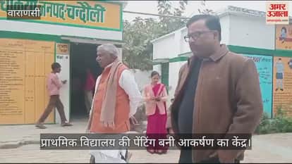 VIDEO : चंदौली में वॉल पेंटिंग के चित्र से प्राथमिक विद्यालय द्वितीय आकर्षण का केंद्र, विधायक चेयरमैन ने किया अवलोकन