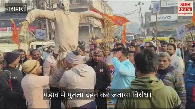 VIDEO : चंदौली में पुतला फूंककर जताया विरोध, बांग्लादेश में हो रहे हिंदुओं पर अत्याचार के खिलाफ आक्रोश