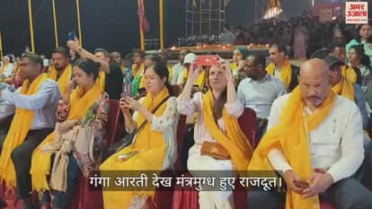 VIDEO : 20 देशों के राजदूतों ने दशाश्वमेध घाट पर देखी गंगा आरती