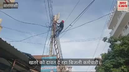 VIDEO : बिना सुरक्षा उपकरण के बिजली ठीक कर खतरे को दिया दावत